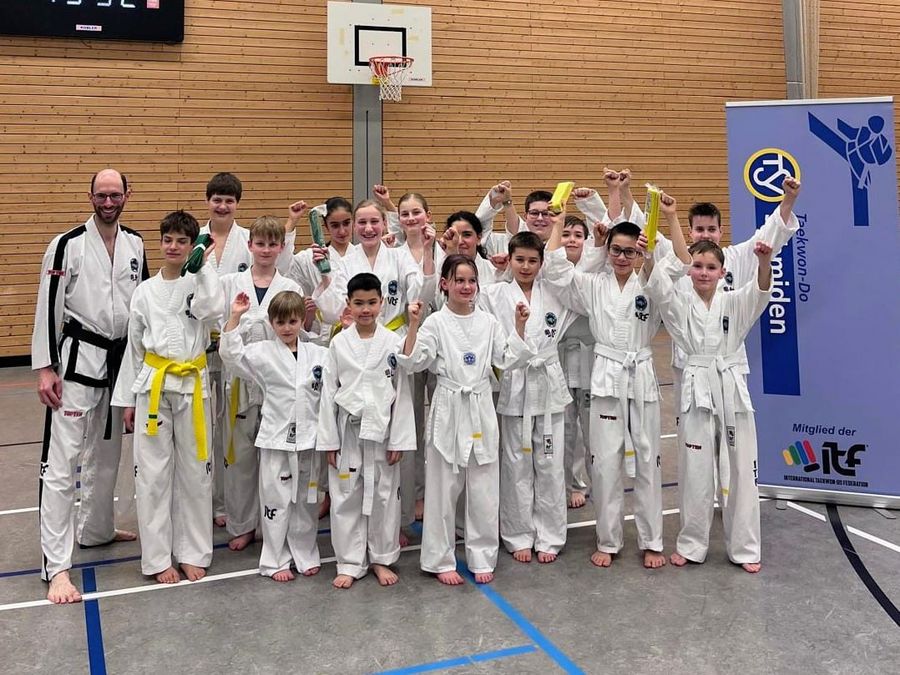 Insgesamt 19 Sportler des TSV Schmiden zeigten starke Leistungen und bestanden ihre nächste Gürtelgraduierung.